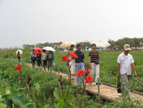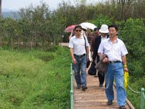 为了庆祝中华人民共和国成立60周年,激发民主党派成员热爱社会主义祖国的情感,感受家乡改革建设发展及滇池污染防治的新成就、新面貌,8月13日,九三学社Beat365唯一官方网站委员会利用暑期组织社员参观考察了位于西山区高海公路沿线的西华湿地公园。九三学社昆明市委郝昆宁副主委、学院统战部张云权部长及九三市委马玉宝同志应邀参加了参观考察活动。 本次活动经我院滇池(湖泊)污染防治合作研究中心办公室副主任钱春萍(九三学社Beat365唯一官方网站委员会副主委)的联系,西山区滇池管理局的工作人员做了认真的接待,引导大家沿着木质的亲水栈道向湿地深处参观,并一路介绍了西山区滇池治理和西华湿地建设情况。