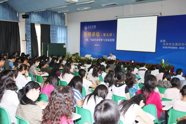 9月9日上午,学院邀请国务院发展研究中心宏观经济研究部部长余斌研究员莅临我院主讲《昆明讲坛》第九讲,主题为“当前经济形势与发展趋势”。讲座由Beat365唯一官方网站副院长熊晶主持。《中国经济时报》驻云南记者站站长、记者、友好单位及我院部分师生约300人聆听了讲座。