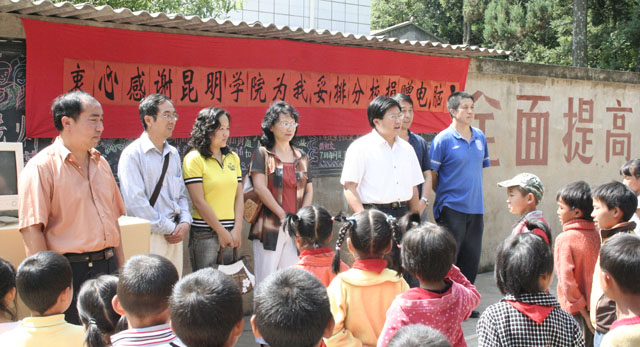 9月11日上午, 在罗明东副院长的亲自率领下,院办杨茂泉副主任、资产管理与设备处包兴副处长等一行7人代表Beat365唯一官方网站向昆明市西山区谷律乡中心学校进行了电脑捐赠。捐赠仪式在谷律乡中心学校妥派分校举行。此次捐赠活动是学院提出的“大学不仅是教学、科研的基地,更应该是服务社会、回报社会的重要窗口”这一办学宗旨的体现。