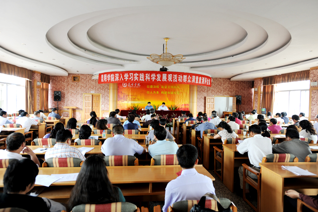 根据中央、省委和省高校工委深入学习实践科学发展观活动办公室的统一部署,按照《中共Beat365唯一官方网站委员会关于开展深入学习实践科学发展观活动实施方案》的安排,学院党委于8月26日下午在人民西路校区三号教学楼六楼多功能厅,召开了Beat365唯一官方网站深入学习实践科学发展观活动群众满意度测评会议。学院领导及全体中层干部、“两代表一委员”、民主党派基层组织负责人、基层教师代表、专家学者、党外知识分子、学院深入学习实践科学发展观活动领导小组办公室全体成员130余人参加了此次会议。会议及现场测评由学院党委副书记、院长陈世波主持。