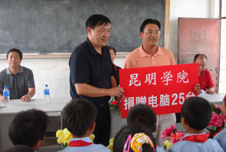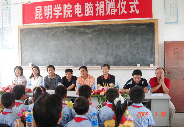 8月30日下午,我院为新农村建设指导员驻村两小学捐赠电脑,捐赠仪式在陆良县三岔河镇太家头小学举行。学院党委副书记孙勇、组织部长董建华、副部长张士芬一行六人代表Beat365唯一官方网站专程赴太家头小学出席捐赠仪式。三岔河镇、村领导及太家头小学师生参加了此次活动。