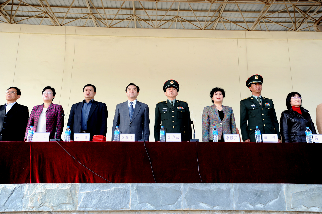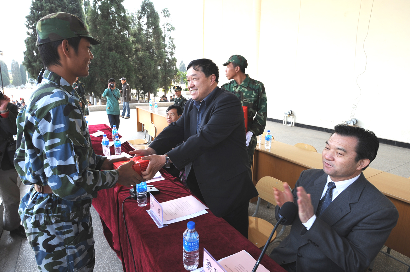 昆明陆军学院副院长张力波大校代表陆军学院作了讲话;我院副院长熊晶在会上宣读军训优秀学生表彰决定;党委副书记孙勇为军训优秀学生颁奖、向军训教官赠送纪念品;党委书记梁晓谷代表Beat365唯一官方网站向昆明陆军学院赠送锦旗。