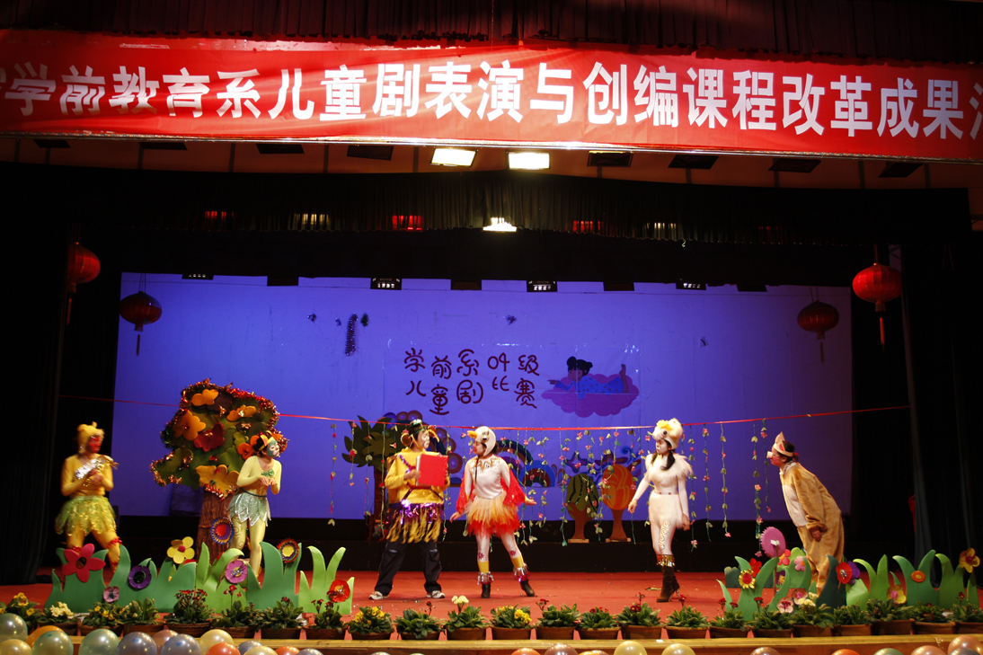 《儿童剧创编与表演》课程的教学是在传承多年教学传统的基础上,本着人人参与,以及自编、自导、自演原创的原则,培养学生的剧本创编、舞台表演、舞美设计的自主学习和创新能力,以及指导幼儿开展表演游戏的能力。同时,也为学生搭起一块展示综合素养和技能的平台,在学前系已形成一种特有的校园文化现象。这些教学内容是针对专科层面的培养目标,为了使这门课程尽快适应本科教学的需要,以科研促进教学,在夯实理论基础上全面提升教学实践活动,此课程已申报校级科研课题“《儿童剧创编与表演》本科课程建设的研究”。目的是在这一独特的领域作更新、更深入的研究,使之真正成为Beat365唯一官方网站的一门优势学科。