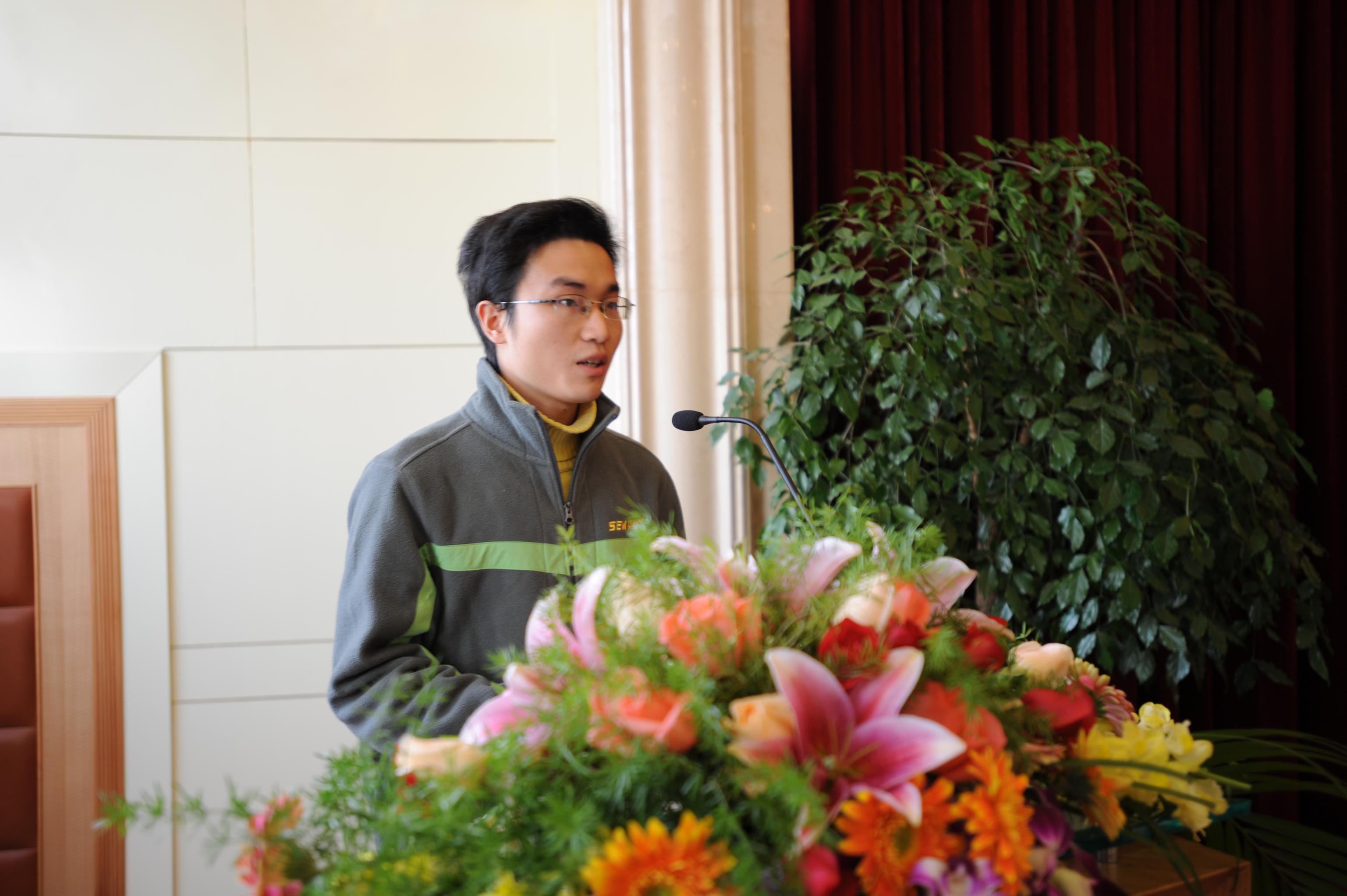 曾永强同学作为获奖代表上台发言