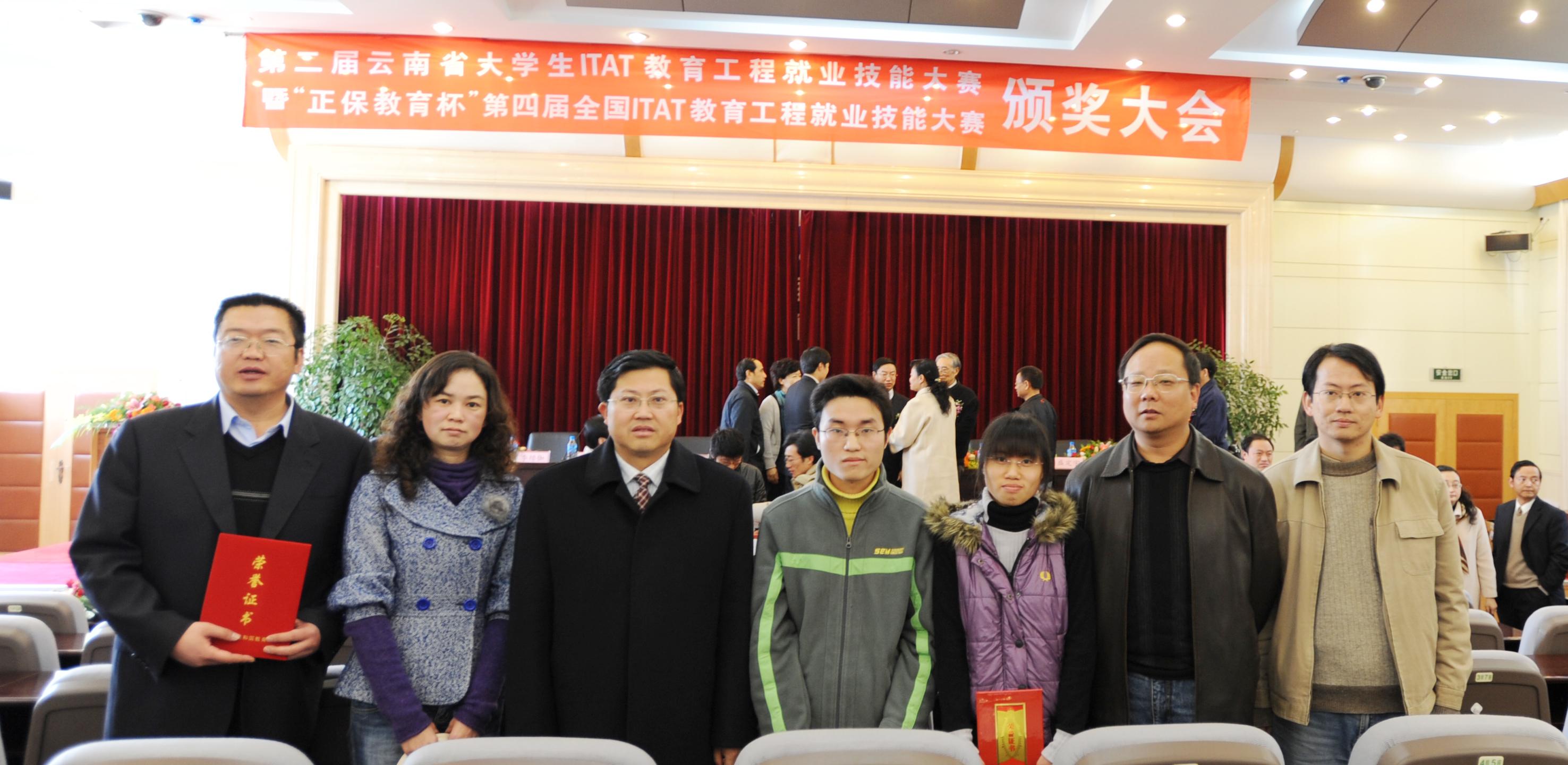 12月19日上午,第二届云南省大学生ITAT教育工程就就业技能大赛暨“正保教育杯”第四届全国ITAT教育工程就业技能大赛颁奖大会在云南财经大学隆重举行。我院罗明东副院长、教务处、自动控制与机械工程系的相关负责人,率我院赴北京参加“正保教育杯”第四届全国ITAT教育工程就业技术大赛决赛中分别荣获一等奖和二等奖的曾永强、庄秀芬两名同学和带队老师参加了颁奖大会。