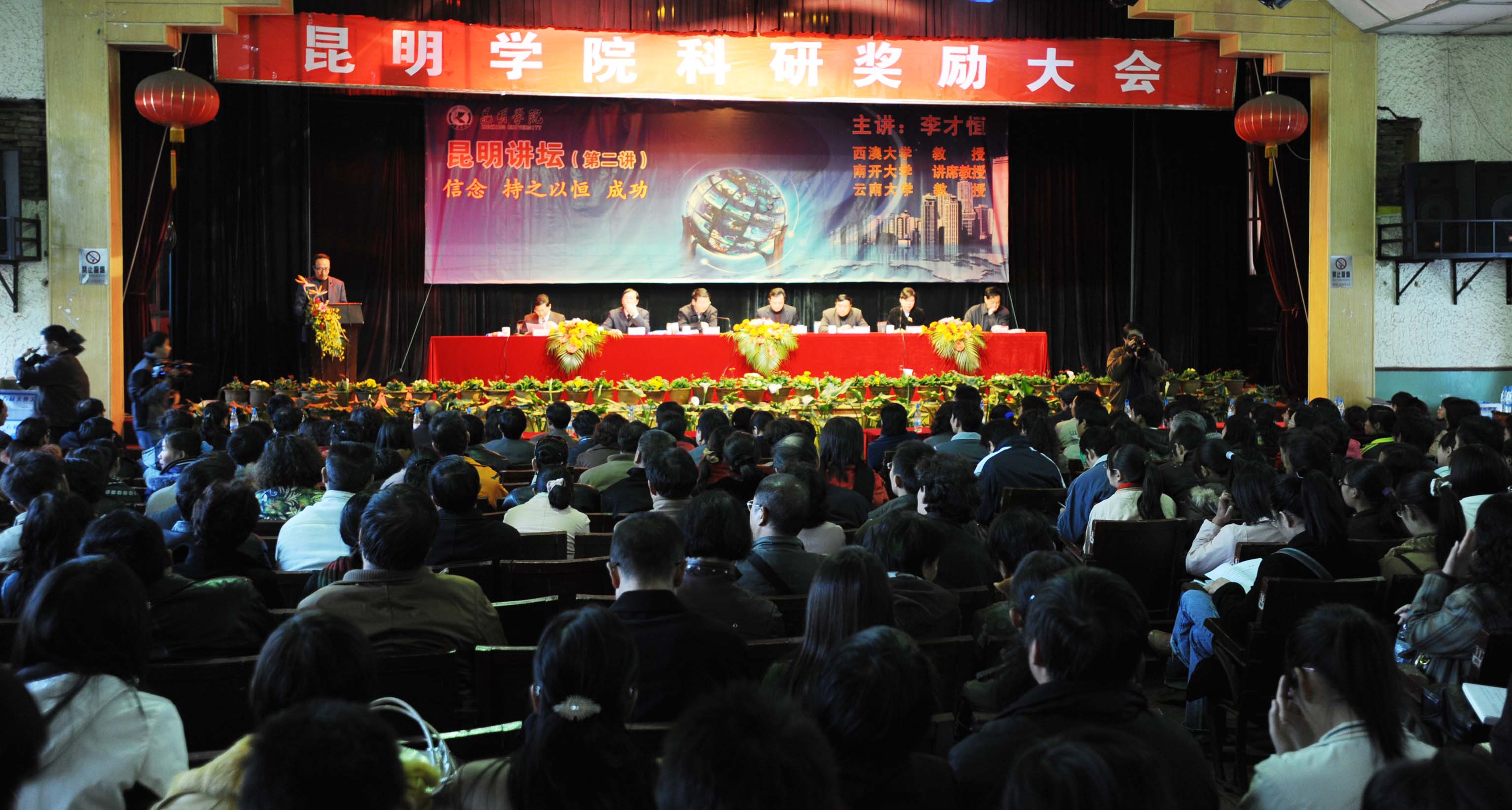 会后,昆明讲坛第二讲开讲。此次讲坛邀请到西澳大学教授、南开大学讲席教授、云南大学教授李才恒先生作了主题为“信念 持之以恒 成功”的报告。李才恒先生深入浅出讲述了自己的研究体会、成功经验,对广大教职工如何进行科研、如何处理科研与教学的关系等启发很大。
