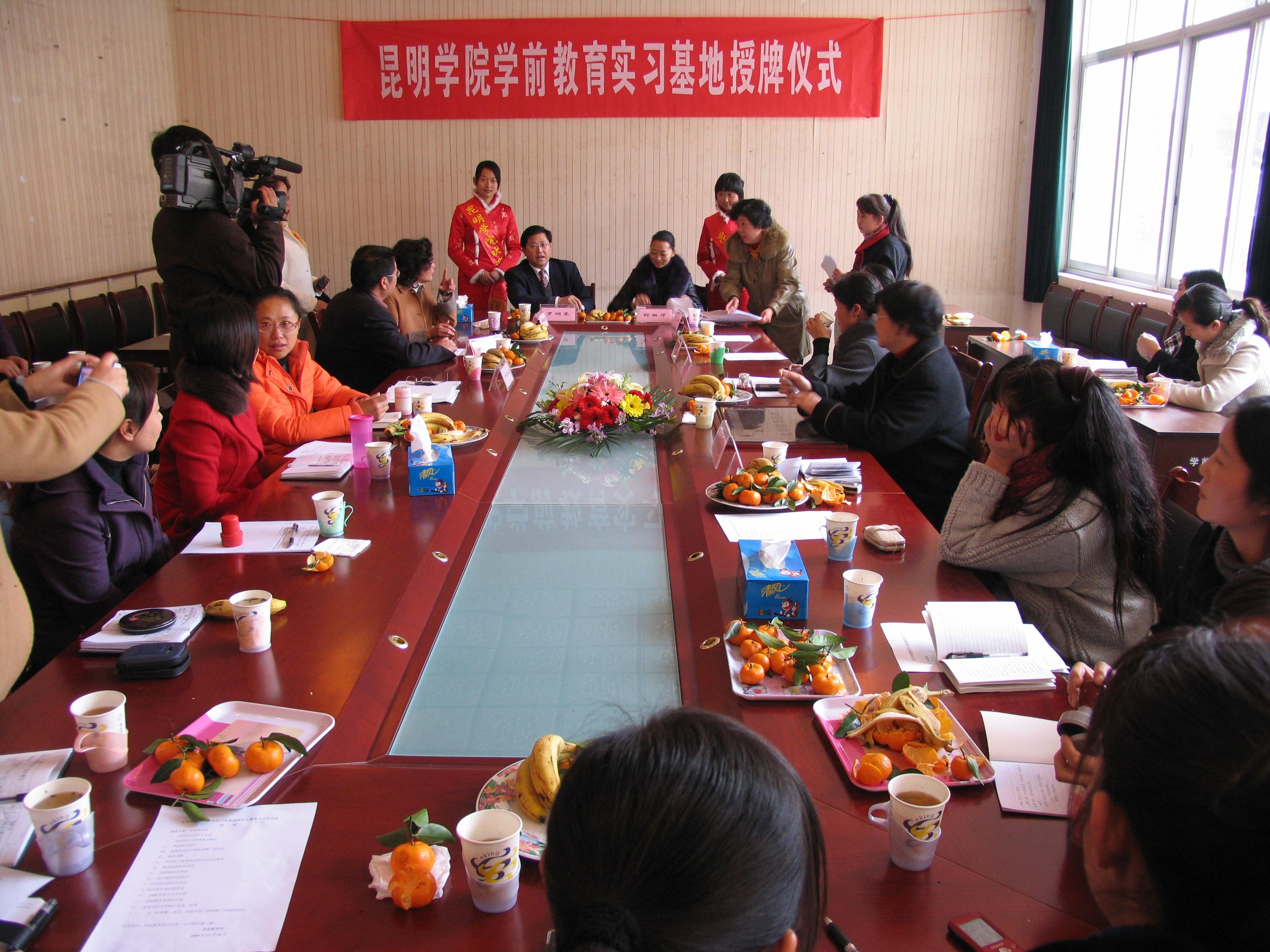 教学实习是师范生培养不可缺少的一个重要环节。为了进一步落实和加强学前教育实习基地建设,12月 11日下午,学前教育实习基地授牌仪式暨实习工作会议在昆师路校区隆重举行。罗明东副院长出席授牌仪式并向在昆的有关省、市、区属的11所知名幼儿园园长授牌。教务处郝旭霞、赵庆江等有关部门负责人出席授牌仪式。授牌仪式由学前教育系负责人杨丽华老师主持。