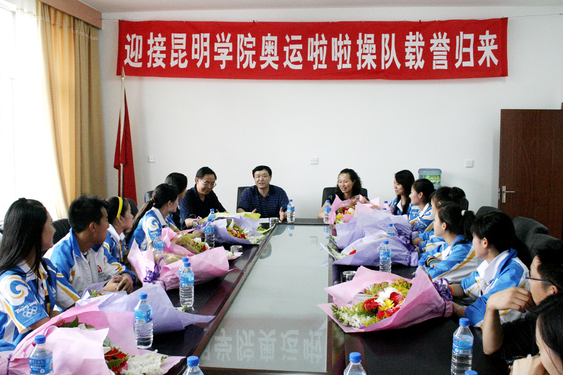 随着北京奥运火炬在鸟巢国家体育场缓缓熄灭,历时16天的29届奥运盛会圆满闭幕,我院奥运拉拉操队经过16天的精彩表演,于8月25日下午载誉归来。学院党委副书记孙勇代表学院党委、行政率领院办、党委宣传部、团委等相关部门及在校学生代表到机场迎接,向载誉归来的队员们献上了鲜花和慰问。云南电视台、昆明电视台、昆明教育电视台、昆明日报等新闻媒体也到机场进行了专访。云南电视台当晚就进行了报道,昆明电视台、昆明教育电视台在次日也进行了报道。