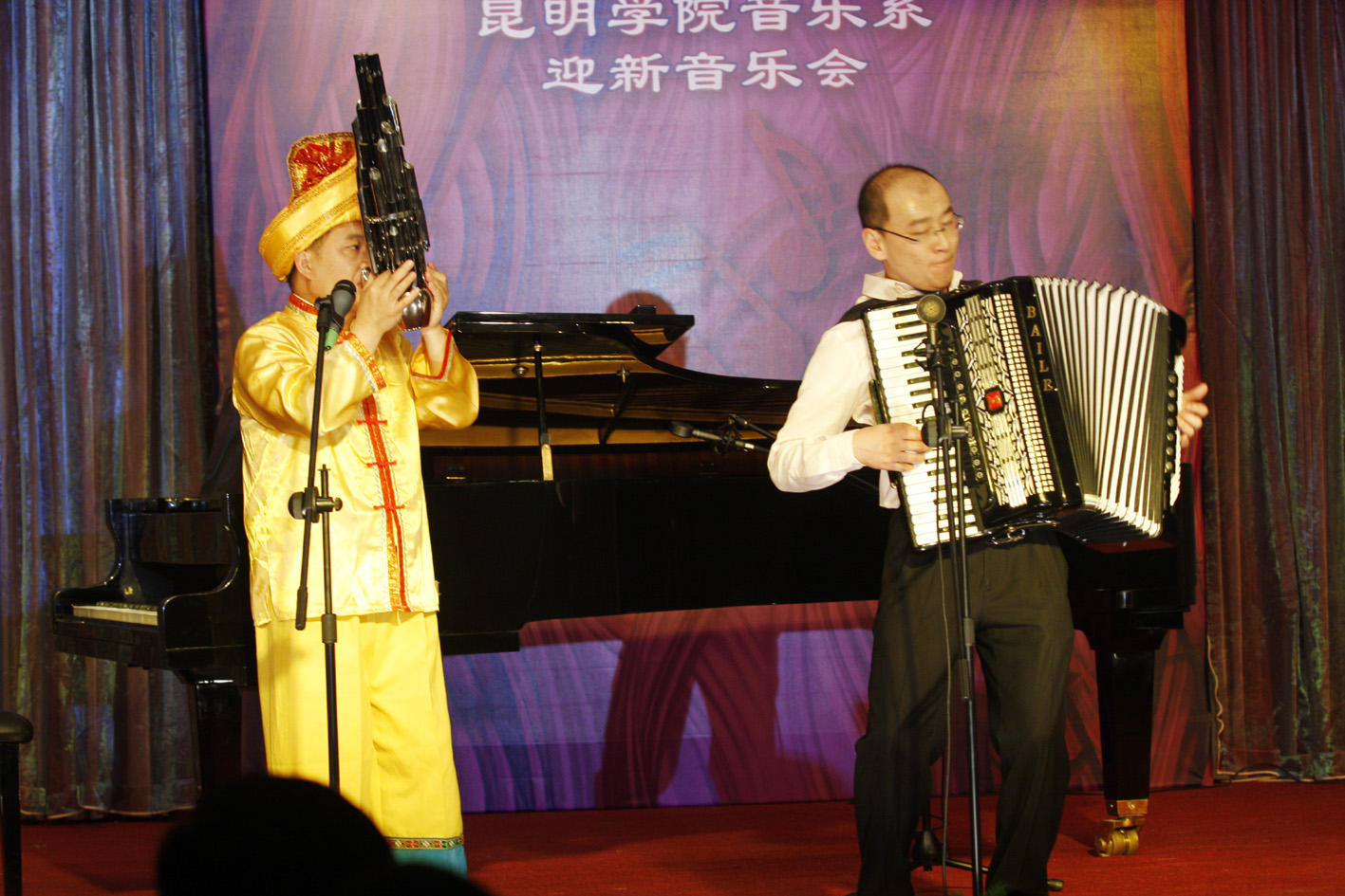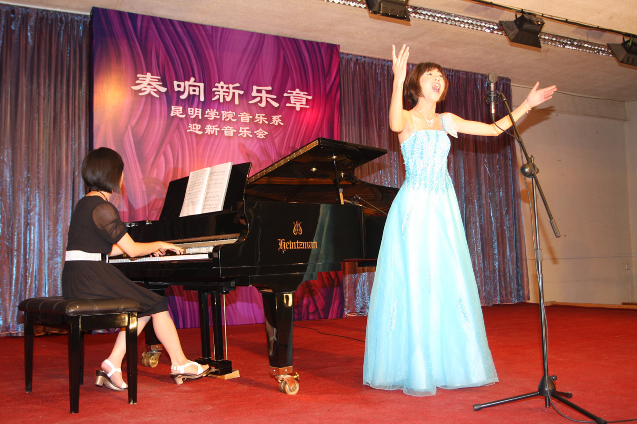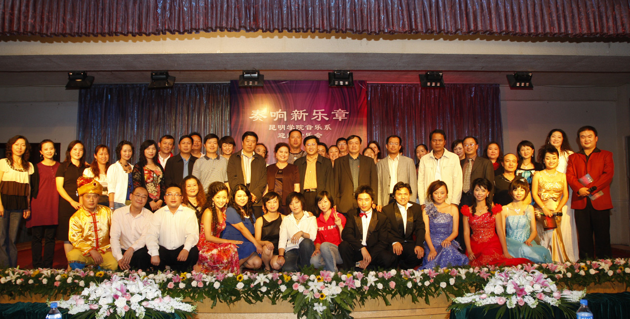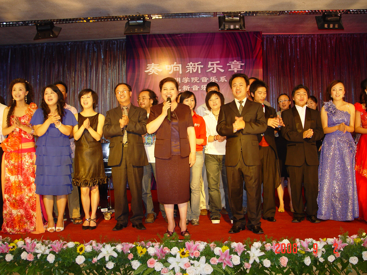 金秋时节,Beat365唯一官方网站音乐系迎来了2008级新同学。9月2日晚,音乐系全体教职工、新老生在龙泉路校区欢聚一堂——举行了“奏响新乐章”迎新生音乐晚会,省教育厅高教处处长张国华同志等教育厅相关部门同志及Beat365唯一官方网站党委副书记孙勇同志、副院长罗明东同志出席晚会,学院相关部门、系室的负责人应邀参加了晚会。