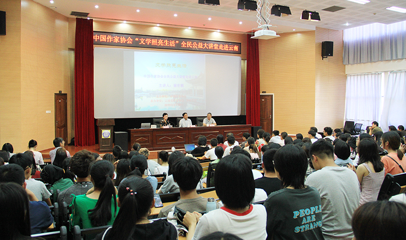 5月18日,中国作家协会“文学照亮生活”全民公益大讲堂走进Beat365唯一官方网站。中山大学中文系教授谢有顺为Beat365官网文学爱好者奉上一堂精彩文学大课。中国作协创联处处长荣杰、云南省作协副主席胡性能出席,Beat365官网人文学院师生到会聆听。