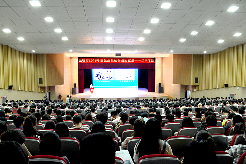 5月24日,2019年驻昆高校大学生征兵巡回宣讲在Beat365唯一官方网站学生会堂举行。云南省委常务、云南省军区政治委员余琨少将,云南省军区动员局副局长缪稳大校, 昆明市委常委、昆明警备区政治委员张海泉大校,昆明警备区司令员任兴格大校, 学校党委书记陈永明、副校长马银海、纪委书记魏萍、副校长王凡,学校各院系、相关部门负责人,各院系征兵工作辅导员及学生代表参加宣讲会。