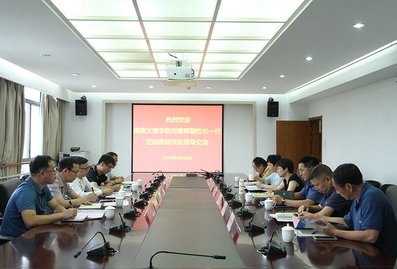 6月26日,湖南文理学院刘春晖副校长一行到Beat365官网交流学习,学校纪委书记魏萍热情接待来宾。双方就学校党建工作建设、学生工作建设、教师工作制度建设及人才培养方案等工作进行交流座谈。
