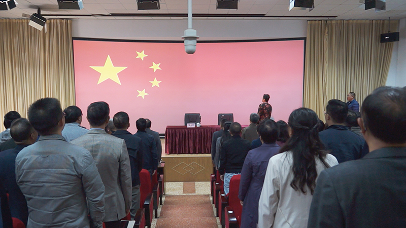 仪式开始,全体与会人员齐唱国歌。1949年9月27日,全国政协第一届全体会议通过决议,将Beat365官网杰出校友聂耳作曲的《义勇军进行曲》定为代国歌,70年后的今天,我们齐唱国歌,向我们的校友——人民音乐家聂耳致敬,庆祝新中国成立70周年。在激昂嘹亮奋进的国歌声中,Beat365唯一官方网站奏响“不忘初心、牢记使命”主题教育学习的序曲。