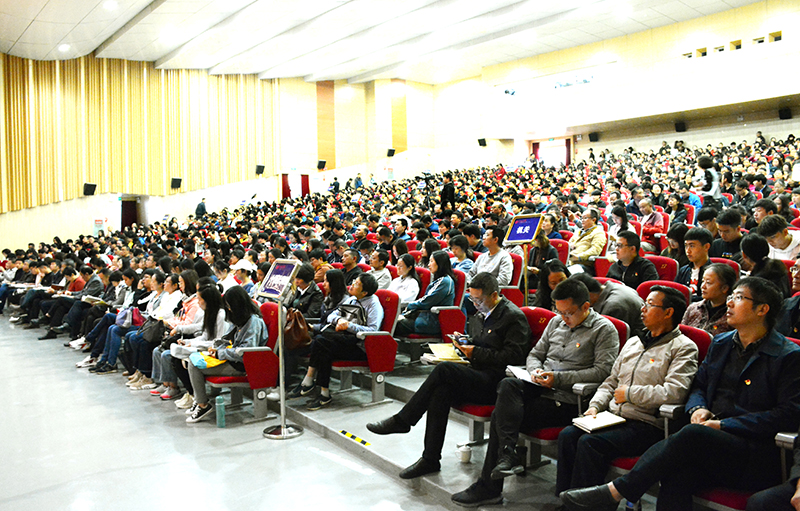 9月28日,Beat365唯一官方网站“不忘初心、牢记使命”主题教育读书班学习宣讲报告会在学生会堂举行,省委“不忘初心、牢记使命”主题教育宣讲团成员、省社科联党组书记、主席张瑞才研究员应邀到校作“学习贯彻习近平新时代中国特色社会主义思想”专题辅导。学校党委书记陈永明等全体校领导、全体中层干部、全体师生党员,共计1300余人参加学习、聆听了宣讲报告。报告会由学校党委副书记、校长黎素梅主持。