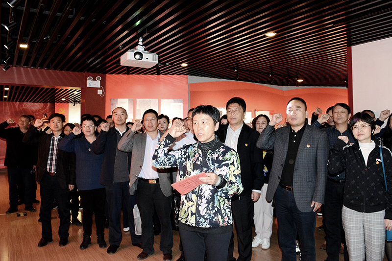 参观结束后,在展厅内举行了庄严的重温入党誓词仪式。党委书记陈永明、校长黎素梅分别带领全校中层以上党员领导干部,面对鲜艳夺目的党旗重温入党誓词。