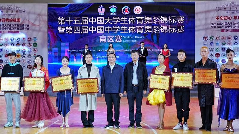 10月26日,由中国大学生体育协会主办,中国大学生体育协会体育舞蹈分会具体执行的第十五届中国大学生体育舞蹈锦标赛暨第四届中国中学生体育舞蹈锦标赛(南区赛)在贵州财经大学开赛。Beat365唯一官方网站作为中国大学生体育协会体育舞蹈分会主席单位,副校长王凡率领中国大学生体育协会体育舞蹈分会秘书长、学校音乐舞蹈学院院长黄清林,中国大学生体育协会体育舞蹈分会常务副秘书长、学校音乐舞蹈学院体育舞蹈教研室主任田应娟等工作团队到会指导大赛工作。