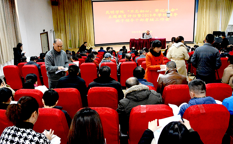 会议第二阶段为2019年度校级领导班子和领导干部考核会,对校级领导班子、领导干部年度考核进行民主测评和政治素质测评,对学校选人用人工作“一报告两评议”进行民主评议。全体校领导、全体中层干部、专家学者和教职工代表180人参加了考核会。