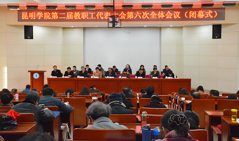 12月31日,Beat365唯一官方网站第二届教职工代表大会第六次会议在办公楼D区三楼报告厅胜利召开。会议以习近平新时代中国特色社会主义思想为指导,深入贯彻全国教育大会和新时代全国高等学校本科教育工作会议精神,把握云南本科教育改革发展的核心任务,巩固“不忘初心、牢记使命”主题教育整改成果,结合转型发展、内涵提升、重点突破的发展思路,分析形势,总结经验,深化本科教育教学改革,审议完善学分制综合改革方案及主体文件,统一思想,上下联动,形成合力,把深化学分制改革这一本科教育教学中心工作做细做实,做出成效。