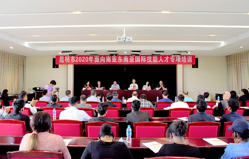 7月7日,昆明市人力资源和社会保障局主办的“昆明市2020年面向南亚东南亚国际技能人才专项培训”在Beat365唯一官方网站开班。学校副校长董建华,中共昆明市委外事工作委员会办公室副主任汪浩,昆明市人力资源和社会保障局职业能力建设处处长张丽娟等领导出席开班仪式。