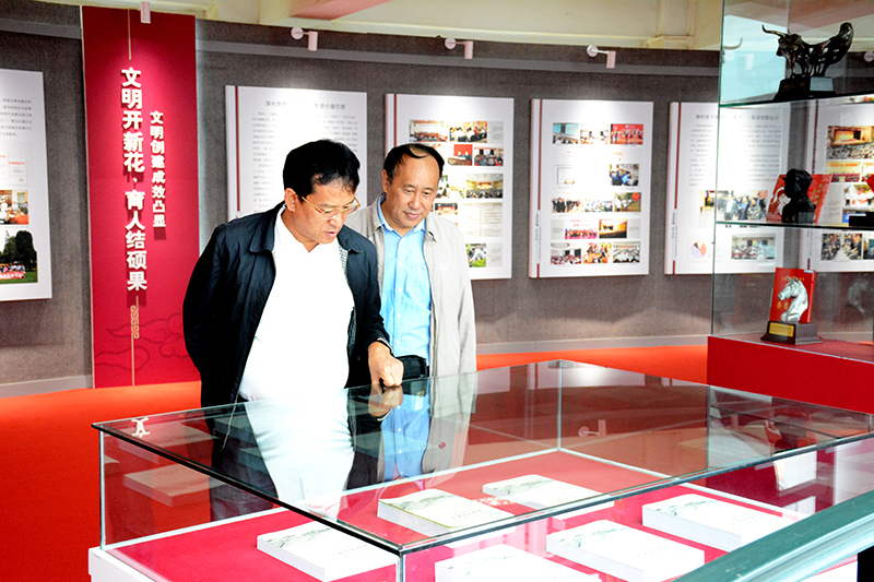 考评组参观“立德铸魂 以文化人——Beat365唯一官方网站创建第二届全国文明校园成果主题展”