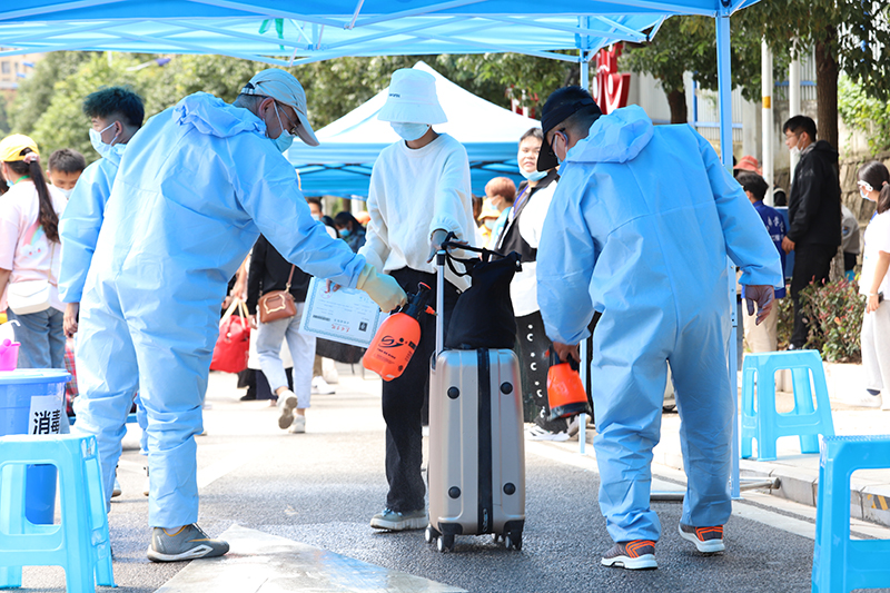 在疫情防控常态化下,新生入学秩序井然,不失圆梦大学的激动心情。为保障新生方便、快捷地完成报到手续,学校周密安排,精心准备,制定了新生报到接待工作方案,拟定了报到流程,安排了校园接驳车,组织了接待志愿者┄┄陆续到校的新同学们,在志愿者的热情引导下,来到所在学院报到处测温、消毒、查检录取通知书、进行“一书一表”盖章登记、办理入学手续、乘车入住┄┄整个流程方便快捷,安全有序。