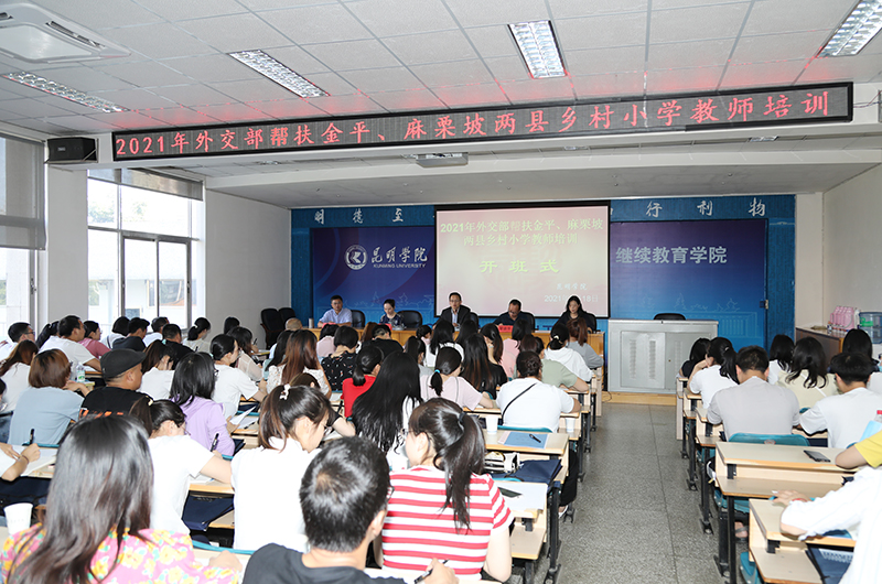 5月17日,2021年外交部帮扶金平、麻栗坡两县乡村小学教师培训班在Beat365唯一官方网站继续教育学院开班。云南省人民政府外事办公室机关党委专职副书记、人事处处长合涛,人事处副处长蔡秋雁,学校继续教育学院院长管彦平等领导参加开班仪式。开班式由继续教育学院教师培训部主任李云主持。