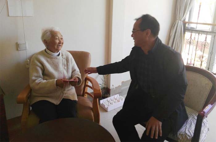 在老教职工家中,杨斌同志详细询问了老教师们的身体状况、生活情况,了解他们实际生活中的困难,细心地叮嘱老人们保重身体。张超老师兴致勃勃地把当年在岗时的照片拿出来给大家观看,回忆起在教育第一线的青春年华,张老师谈笑风生,十分开心。