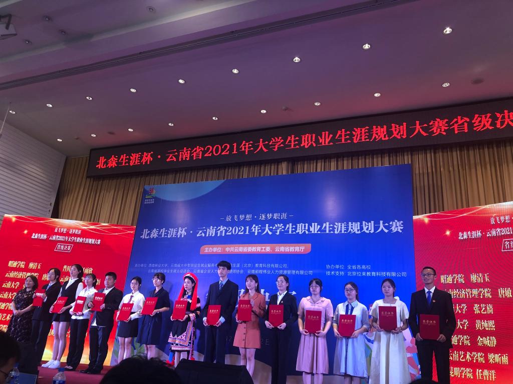 本届大赛分校级赛、省级晋级赛和省级决赛三个阶段。省级晋级赛共计758名选手参赛,通过专家评委的评审,最终有来自25所高校的40名选手参加省级决赛。决赛包括“职场角色模拟VCR展示”、“主题演讲”、“现场问答”三个环节,经过紧张激烈的角逐,学校经济管理学院2019级人力资源专业的任曹阳同学最终获得北森生涯杯•云南省 2021 年大学生职业生涯规划大赛本科组二等奖。