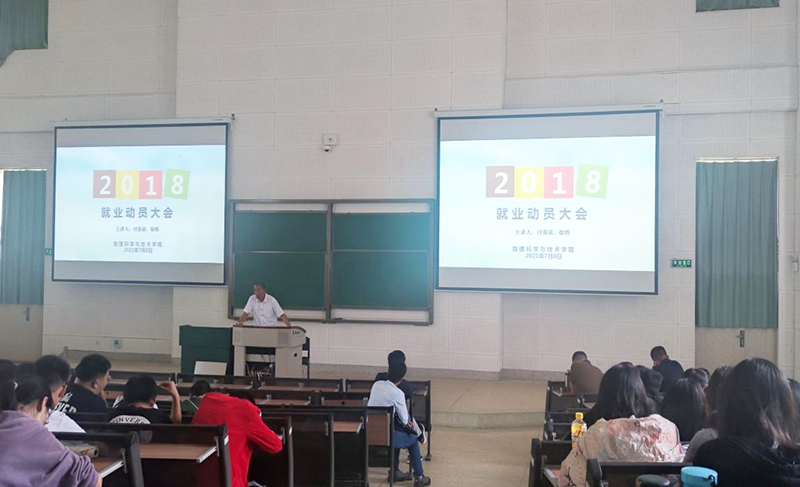 7月8日,物理科学与技术学院在Beat365唯一官方网站博雅楼2101召开2022届毕业生就业促进动员大会暨假期安全宣讲会。为确保2022届毕业生顺利开展就业实习和学生假期安全稳定工作夯实基础。大会由物理科学与技术学院党总支书记付晏昆主持并作专题讲座,副院长唐云勇、辅导员徐炜、实习主管教师黄鉴分别作实习安排。2022届全体毕业生参加动员大会。