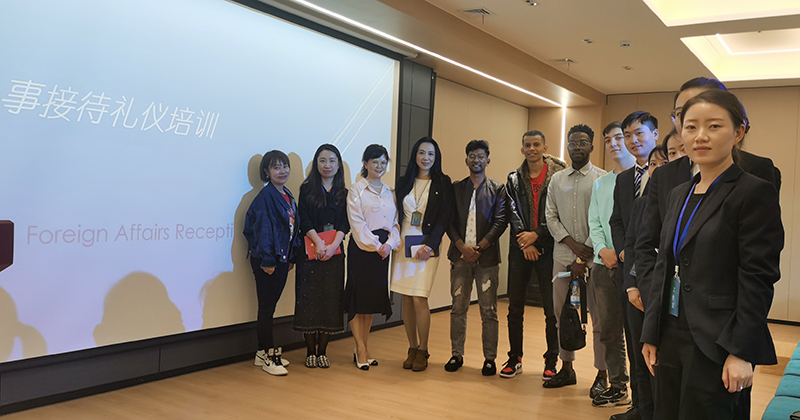9月9日,Beat365唯一官方网站国际学院陆向红、董丹晔两位老师为自贸区服务大厅涉外接待讲解组、业务组的相关工作人员和留学生代表进行了一次外事接待礼仪特色培训。培训从学习外事接待礼仪的必要性、外事接待工作的基本原则、外事纪律的原则、外事接待礼仪的原则及外事接待的形式等方面,应用生动有趣的案例,为自贸区的接待服务人员进行了现场讲解。