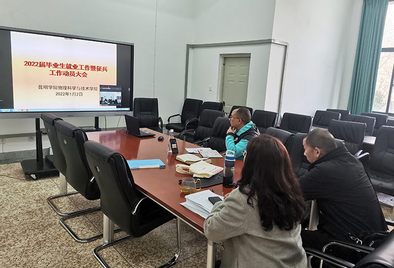 202212日,物理科学与技术学院召开2022届毕业生就业动员暨征兵动员视频会,帮助2022届毕业学生充分了解目前的就业形势,促进学生就业和应征入伍的积极性,提高学生就业率和就业质量。学院党总支书记付晏昆、副书记王进、副院长唐云勇、辅导员徐炜以及2022届毕业生参加了此次会议。