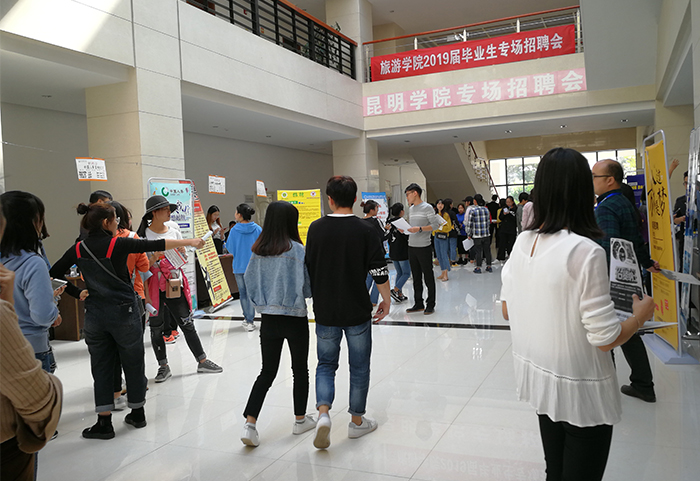 本次招聘会邀请到包括餐饮住宿、居民服务等三产众多行业共计54家用人单位,提供了涵盖旅游服务共计825个工作岗位,为毕业生们就业提供了多种选择。招聘会秩序井然、气氛热烈。学生们带着精心准备好的求职简历和自荐信,信心满满地穿梭于各招聘席之间,积极与招聘人员交流,主动了解用人单位的情况。值得一提的是,云南省国际旅行社有限公司、万达酒店管理公司、上海大鼓餐饮管理有限公司、云南迪兴商业管理有限公司等多家用人单位以导游、厨师、营养师、门店经理、营销、文员、行政后勤等众多岗位吸引了多名毕业生前来咨询、洽谈,截止招聘会结束用人单位共收到求职简历184份。毕业生的求职意愿及主动性有明显增强。