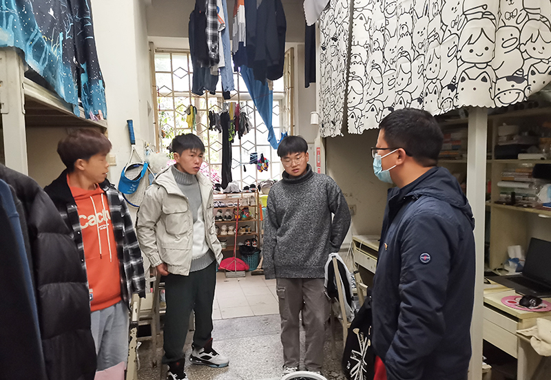 学院所有领导班子成员、全体辅导员及值班老师到学生宿舍,面对面宣讲疫情防控知识,了解学生对疫情防控政策的掌握情况;了解学生在学习生活中的困难和问题,竭力帮助学生解决学习生活和心理焦虑等方面的问题;调研了解评优助困工作落实情况。