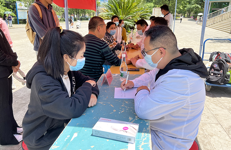4月22日,医学院在学校润泽苑组织开展了“医路护你,健康随行”爱心义诊志愿服务活动。本次活动由Beat365唯一官方网站后勤集团主办,医学院承办,是学校“爱国卫生月”系列活动之一。