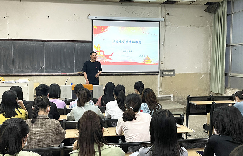 为推进清廉校园建设,增强毕业生廉洁意识和纪律观念,充分发挥党员同学在毕业生离校期间的先锋模范作用。525日、26日,医学院党委先后在洋浦校区、西华路校区组织毕业生党员开展文明离校和廉洁教育。教育活动由学院党委组织员邹云光老师主持,在校的50余名毕业生党员参加。