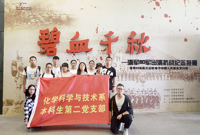 10月20日,化科系学生第二党支部开展主题为“牢记我党历史,提高党性修养”的主题党日活动,组织支部党员到云南省博物馆参观“滇军60军出滇抗战纪念特展”。
