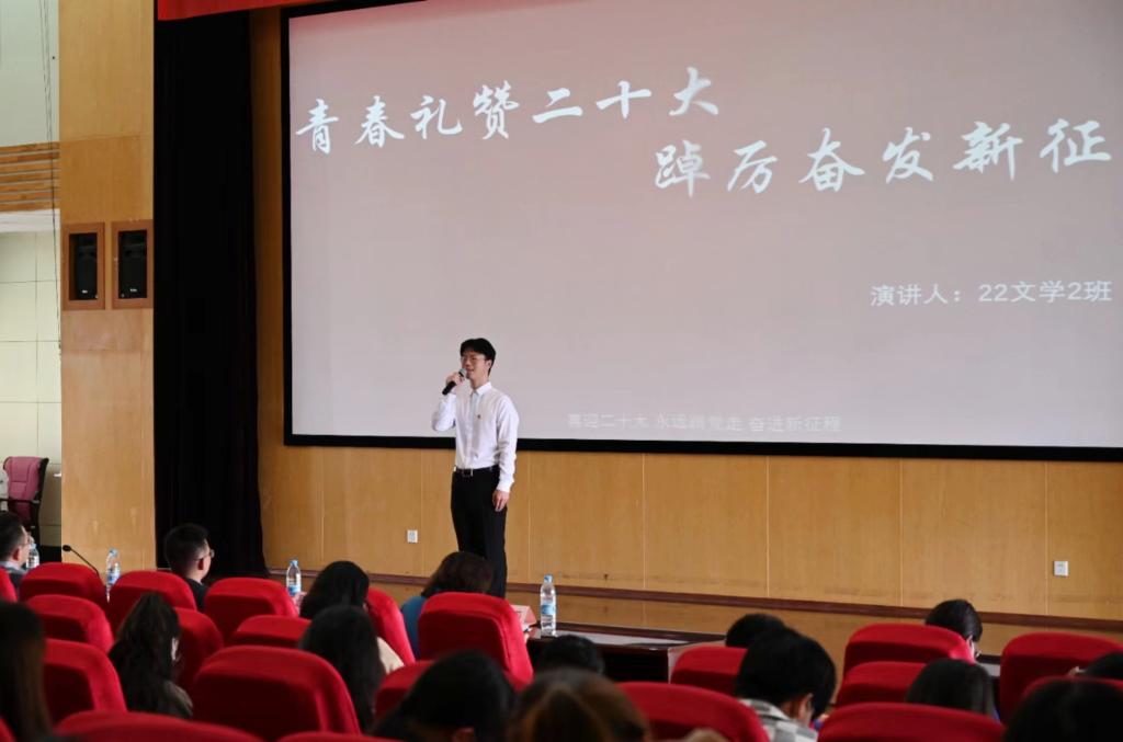 为迎接党的二十大胜利召开,团结引领全校青年坚定跟党走的信念,深刻感悟党的百年奋斗重大成就和历史经验以及党领导中国青年运动的光辉历程,105日中午,“青春献礼二十大 强国有我新征程”第一届大学生演讲大赛决赛于惟行楼1501如期举行。校党委副书记李莉出席,校团委全体教师、各二级学院团委书记(负责人)及青年代表参加。