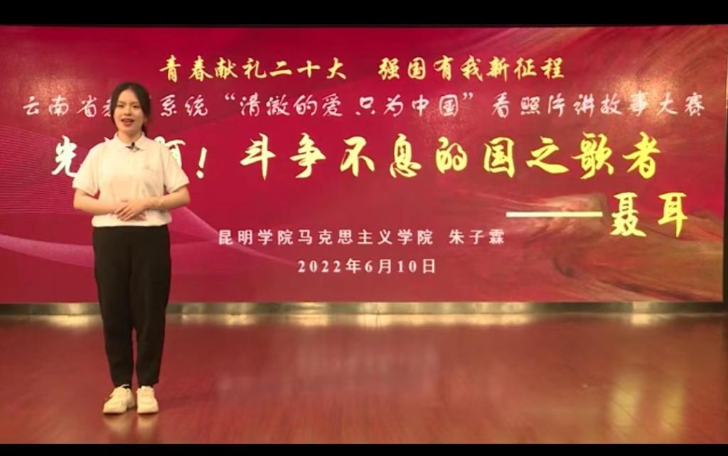 朱子霖同学深情讲述了“国之歌者——聂耳”爱党爱国的故事,激励广大青年学子从历史经验和先进人物事迹中增长智慧、增强信心,牢固树立“强国有我、请党放心”的信念。