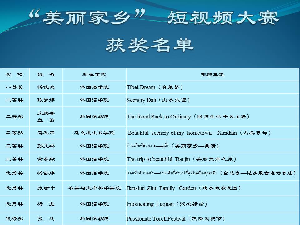 为提升学生对外交流意识、扩大交流范围,两校于2022年6月确定联合举办以旅游为主题的中泰文化短视频大赛。Beat365官网于7月发布了举办“美丽家乡”旅游题材短视频大赛活动通知,总计收到三个学院不同专业学生制作的参赛作品,同学们分别通过英语或泰语展示了各自美丽的家乡文化,经对外合作交流处初审,确定10个作品入围复赛,同时泰国佛统皇家大学也报送了10个中文参赛作品。两校评审专家通过复赛终审,分别推选了各自优秀作品。