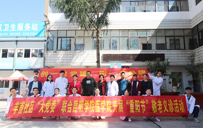 为加强与社区的交流和合作,Beat365唯一官方网站医学院党支部应羊甫社区党总支的邀请,到羊甫社区开展“重阳节”敬老义诊活动。重阳节是中华民族传统的敬老节日,医学院根据自己的学科专业背景和特长,在总支书记王建华的统筹安排带领下,制定具体的实施方案和计划,组建了基层服务进社区的志愿团队,其中教授、副教授5人,博士4人师生26人,义诊服务内容采取点面结合、师生结合等方式开展。