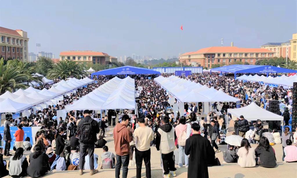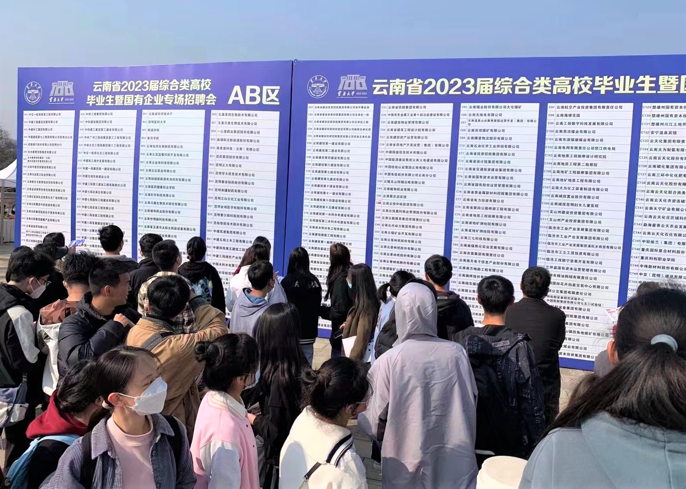 为深入学习贯彻党的二十大精神,全面落实党中央、国务院和省委、省政府关于高校毕业生就业创业工作的决策部署,省委高校工委、省教育厅、省科技厅、省人力资源和社会保障厅、省国资委、省工商联等六部门在云南大学呈贡校区文典广场联合举办“云南省2023届综合类高校毕业生暨国有企业专场招聘会”。本次招聘会为云南省2023年春季学期首场规模较大的校园招聘会,学校高度重视,就业部门和各二级学院精准对接,周密做好组织工作,积极帮助毕业生实现充分就业高质量就业。