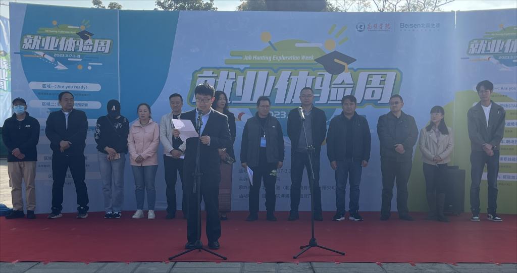 “就业体验周”于3月17日上午举行启动仪式,招生就业处相关负责人、各二级学院分管副书记和辅导员、北森生涯(北京)教育科技有限公司项目经理参加。