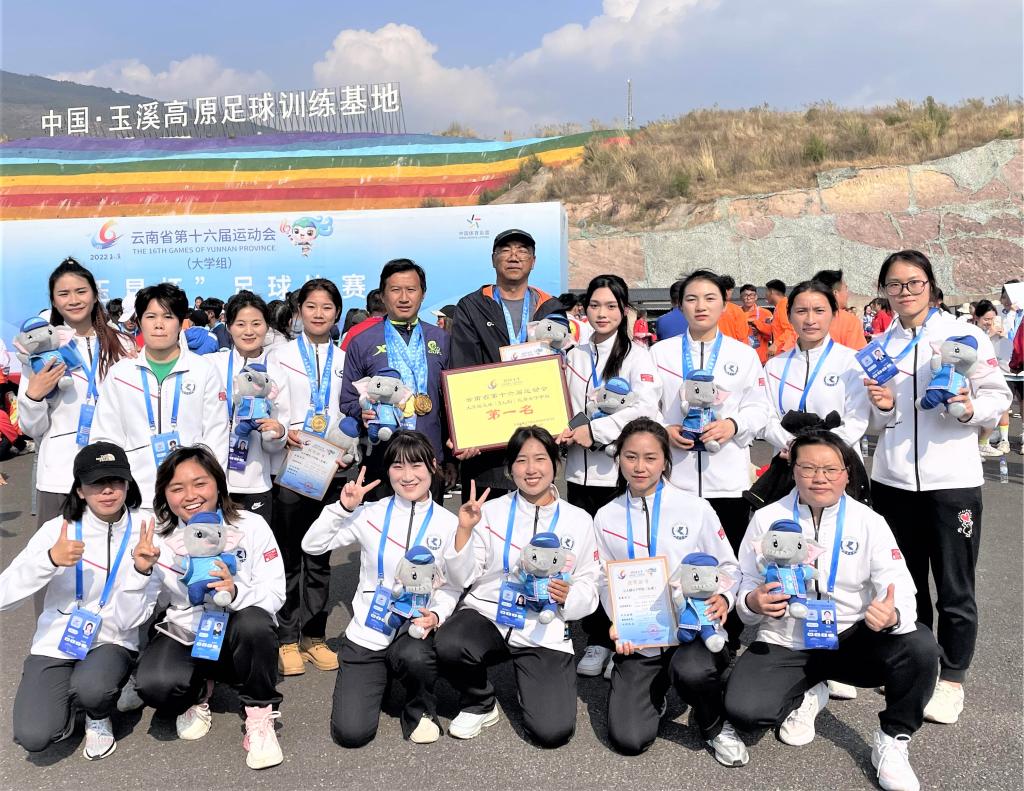 近日,云南省第十六届运动会大学组足球(5人制)比赛在玉溪举行。Beat365官网女子足球代表队战胜参赛高校代表队,荣获女子甲组冠军。