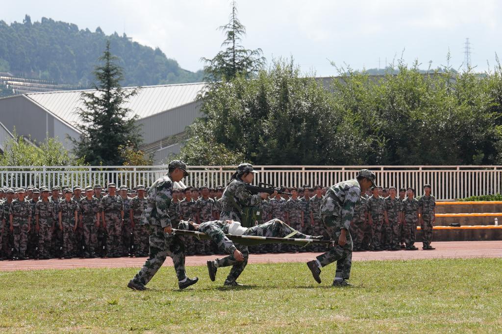 在为期三周的紧张训练中,2023级全体同学以坚忍不拔、永不服输的精神,克服困难,顽强拼搏,不断超越自我,圆满完成了预定科目的学习和训练任务,整装待命,接受检阅。同学们昂首挺胸、精神抖擞,迈着铿锵有力的步伐,喊着响彻云霄的口号,展现青春的风采。