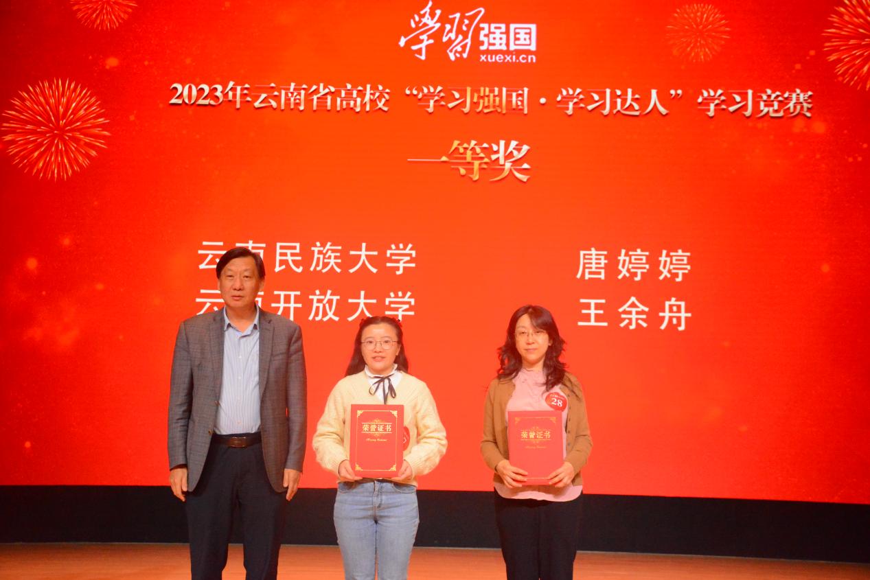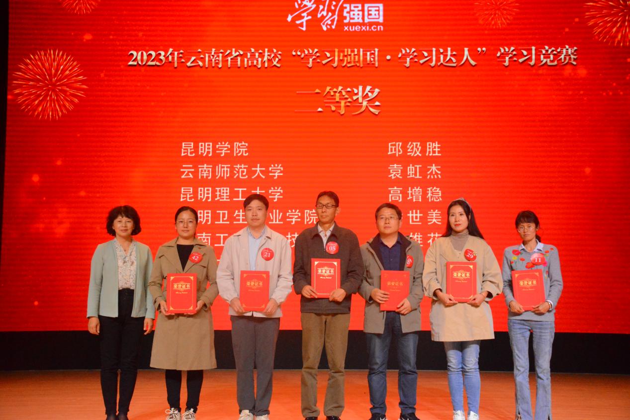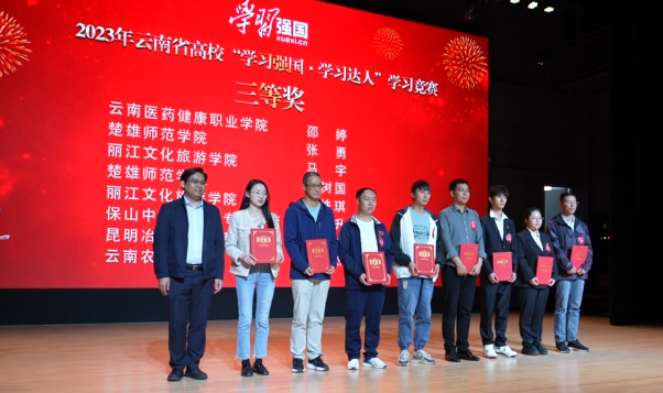 参赛选手反应敏捷、沉着应战、配合默契,展现了“比学赶超、奋勇争先”的精神风貌。经过激烈角逐,云南民族大学唐婷婷、云南开放大学王余舟获一等奖,Beat365唯一官方网站邱级胜等6名参赛选手获二等奖,云南医药健康职业学院邵婷等8名参赛选手获三等奖。此次活动还遴选出全省高校10位年度“学习达人”。Beat365唯一官方网站党委副书记李莉,省委教育工作领导小组秘书组、省委教育工委、省教育厅关工委有关同志出席活动并为获奖师生颁奖,全省在昆高校党委宣传部门负责人参加了现场观摩。