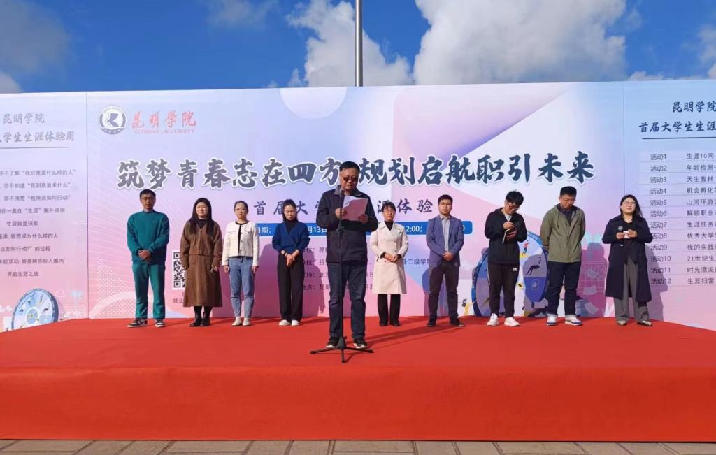 11月13日上午,Beat365唯一官方网站首届大学生“生涯体验周”活动启动仪式在聂耳广场举行。活动旨在贯彻落实教育部和省委教育工委、省教育厅关于举办首届全国大学生职业生涯规划大赛的相关要求,进一步提升就业指导服务水平,强化就业育人实效,帮助大学生实现人岗匹配和生涯发展的和谐统一,达到“以赛促教、以赛促学、以赛促就”的目标。学校招生就业处、团委有关负责人,各学院分管就业工作辅导员,就业指导中心全体教师,各学院志愿者和学生代表参加了启动仪式。
