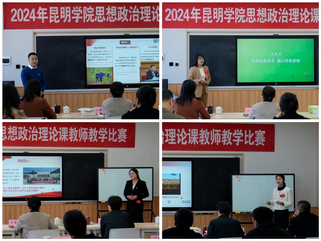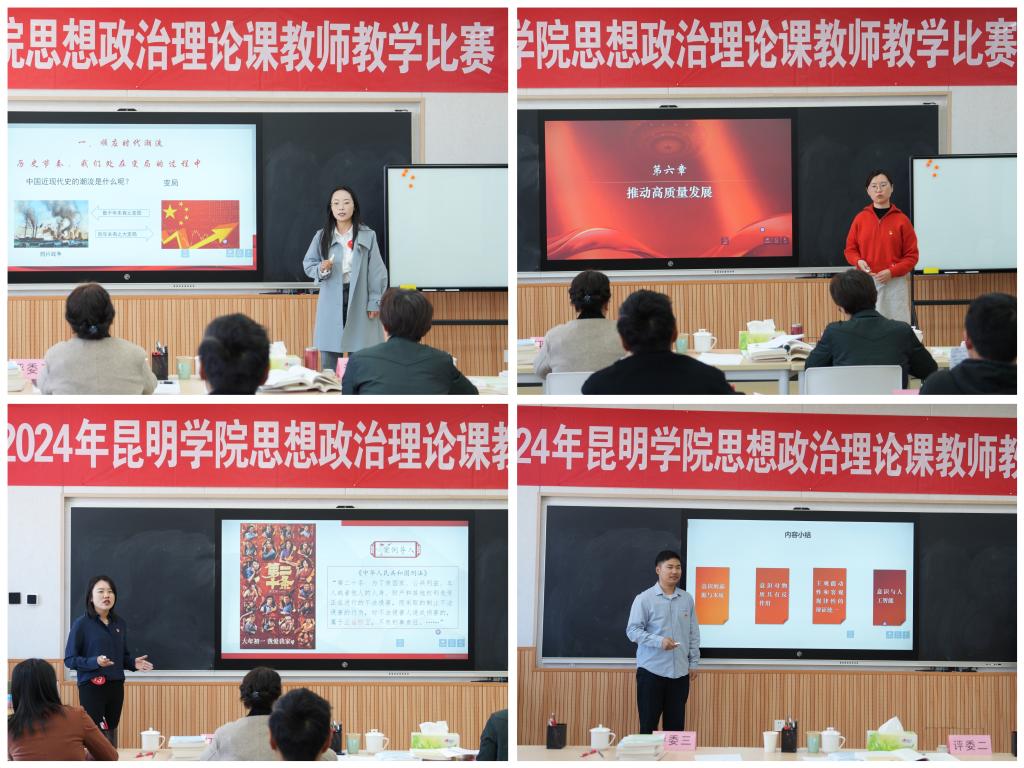 比赛采取讲课模式进行,参赛教师围绕“习近平新时代中国特色社会主义思想概论”“马克思主义基本原理”“毛泽东思想和中国特色社会主义理论体系概论”“中国近现代史纲要”“思想道德与法治”和“形势与政策”等课程,综合运用多种教学方法,理论联系实际,展现出扎实的专业功底、科学合理的教学设计和良好的教学风采。
