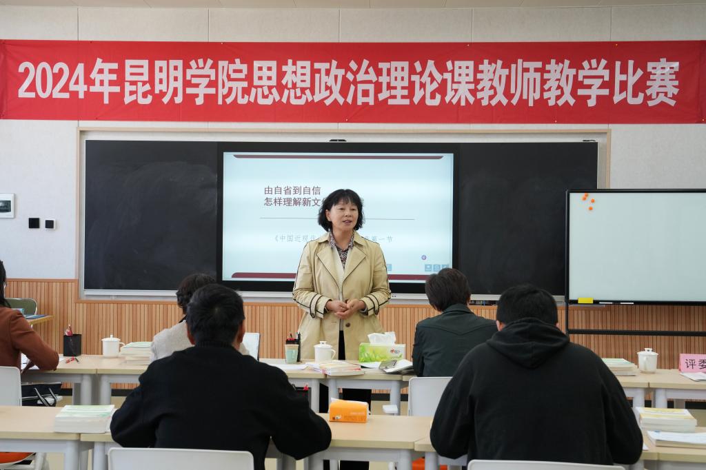 学校党委副书记李莉到场指导。云南艺术学院马克思主义学院院长、教授付梅,云南中医药大学马克思主义学院教授张丽等七位老师受邀担任评委。比赛设置一等奖1名、二等奖2名、三等奖3名,共14名思政课教师报名参赛。