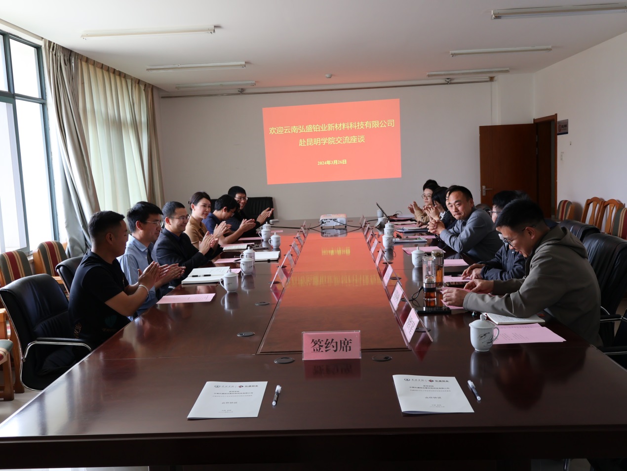 郭华副校长代表学校对云南弘盛铂业新材料科技有限公司一行的到来表示热烈欢迎,并详细介绍了学校相关情况;化学化工学院负责人从教学、科学研究、就业及升学等方面重点介绍了学院的基本情况。苏林总经理介绍了公司以贵金属产业发展和科技创新为导向的发展战略,并表达了对本次合作的期待。双方均表示,将充分发挥各自优势,开展多层次、多领域的合作,探索产学研深度融合的新模式。