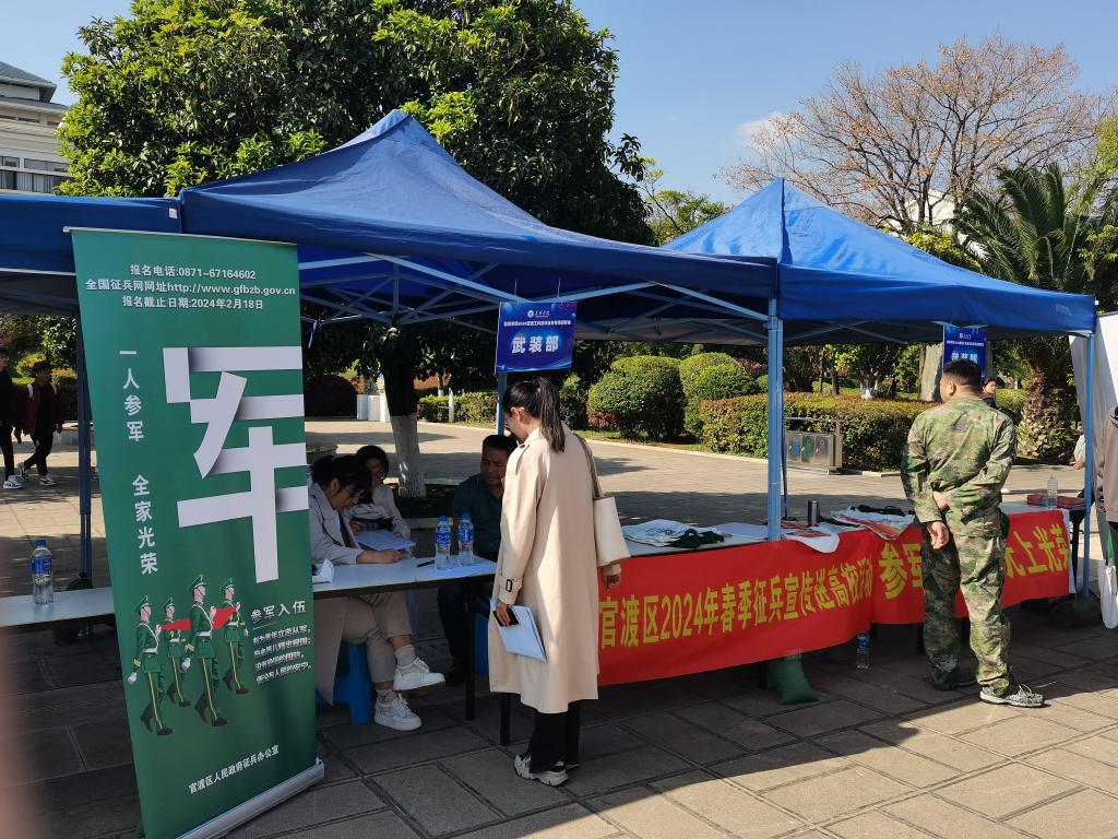 为帮助同学们更加充分了解就业政策,招生就业处就业指导服务中心和学校武装部在现场设置了咨询服务点,向前来参会的同学和用人单位发放《云南省就业政策100问》,特邀官渡区人民武装部到现场进行征兵政策宣传,邀请相关机构现场为有境外留学意愿的同学们答疑解惑。